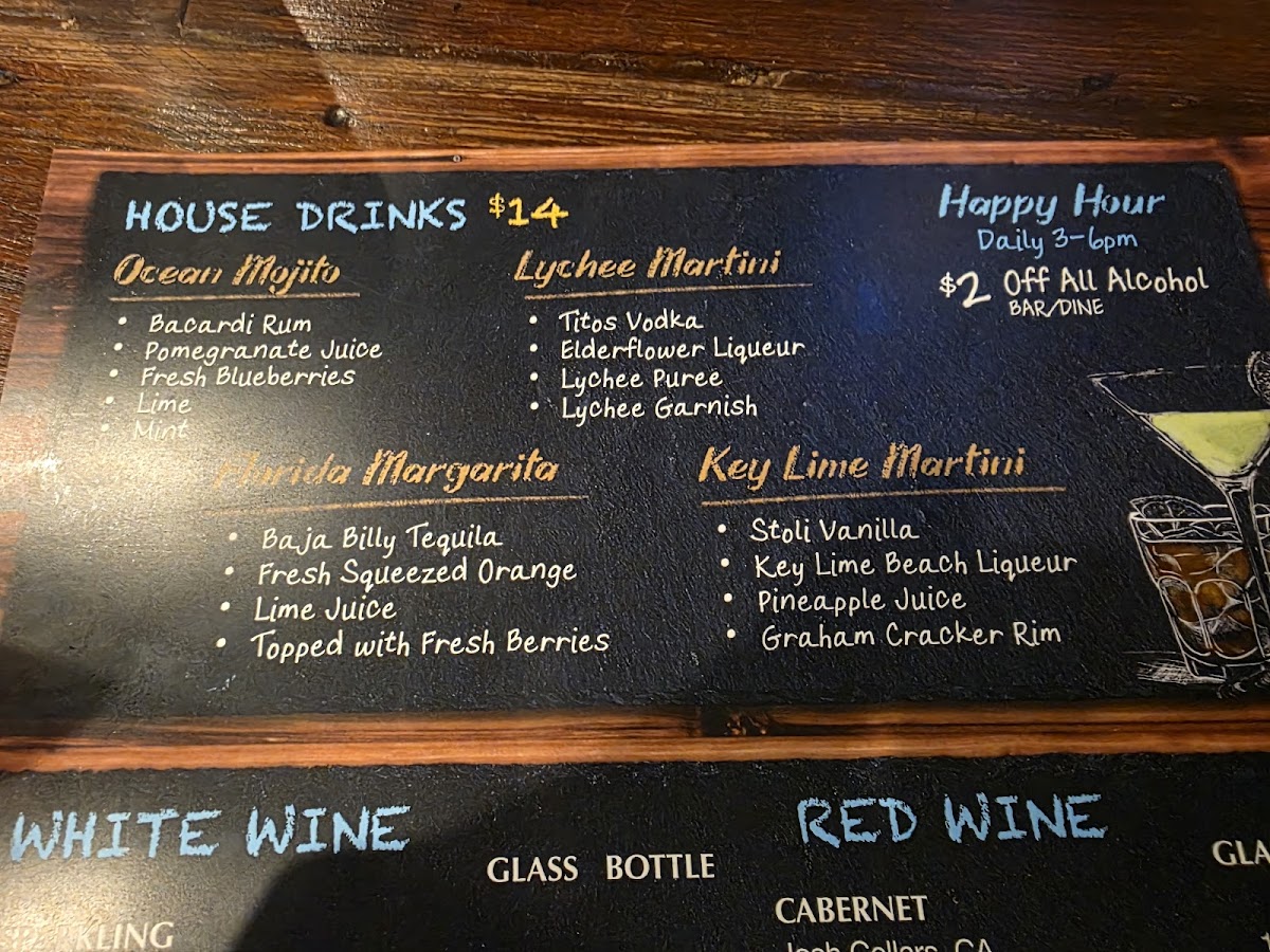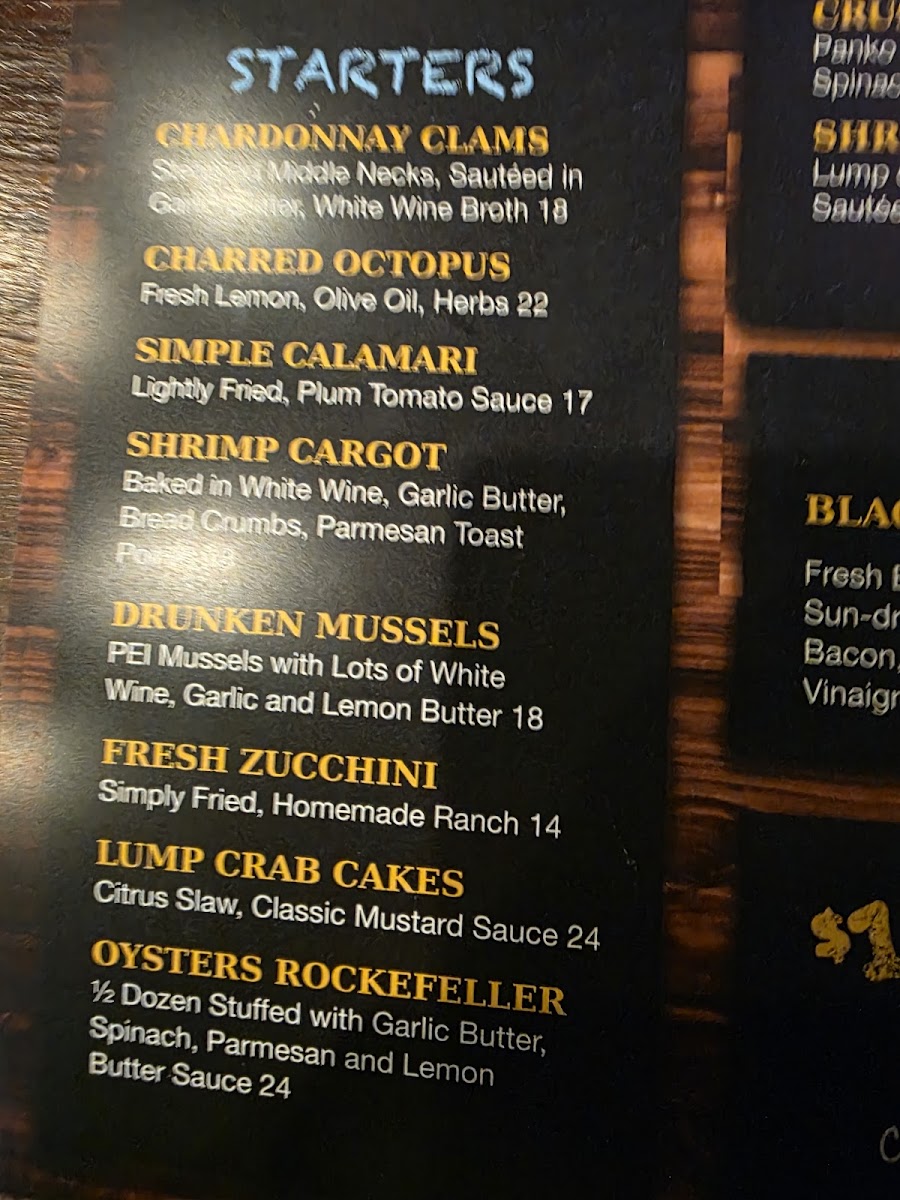 The menu supports dining occasions ranging from quick orders and bar snacks during happy hour to full meals. The variety of seafood and beverage options allows for flexible dining preferences.
